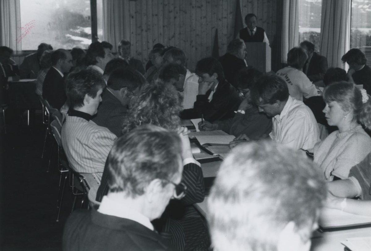 Fundarmenn á fundi, Pétur Sigurðsson á Ísafirði í ræðustól.