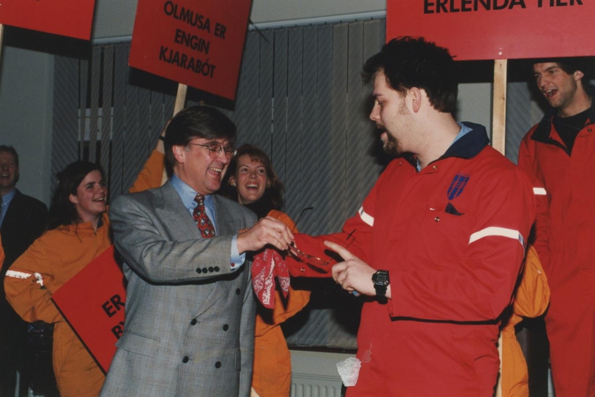 Í sjötugsafmæli Guðmundar J. Guðmundssonar 1997. Þorsteinn Pálsson og Ólafur Darri troða upp.