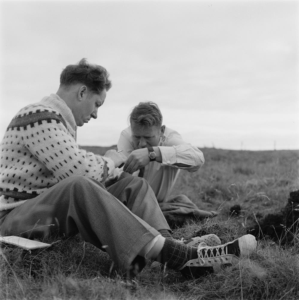 Björn Þorsteinsson og Þorleifur Einarsson við rannsóknir í Garðinum á Reykjanesi.