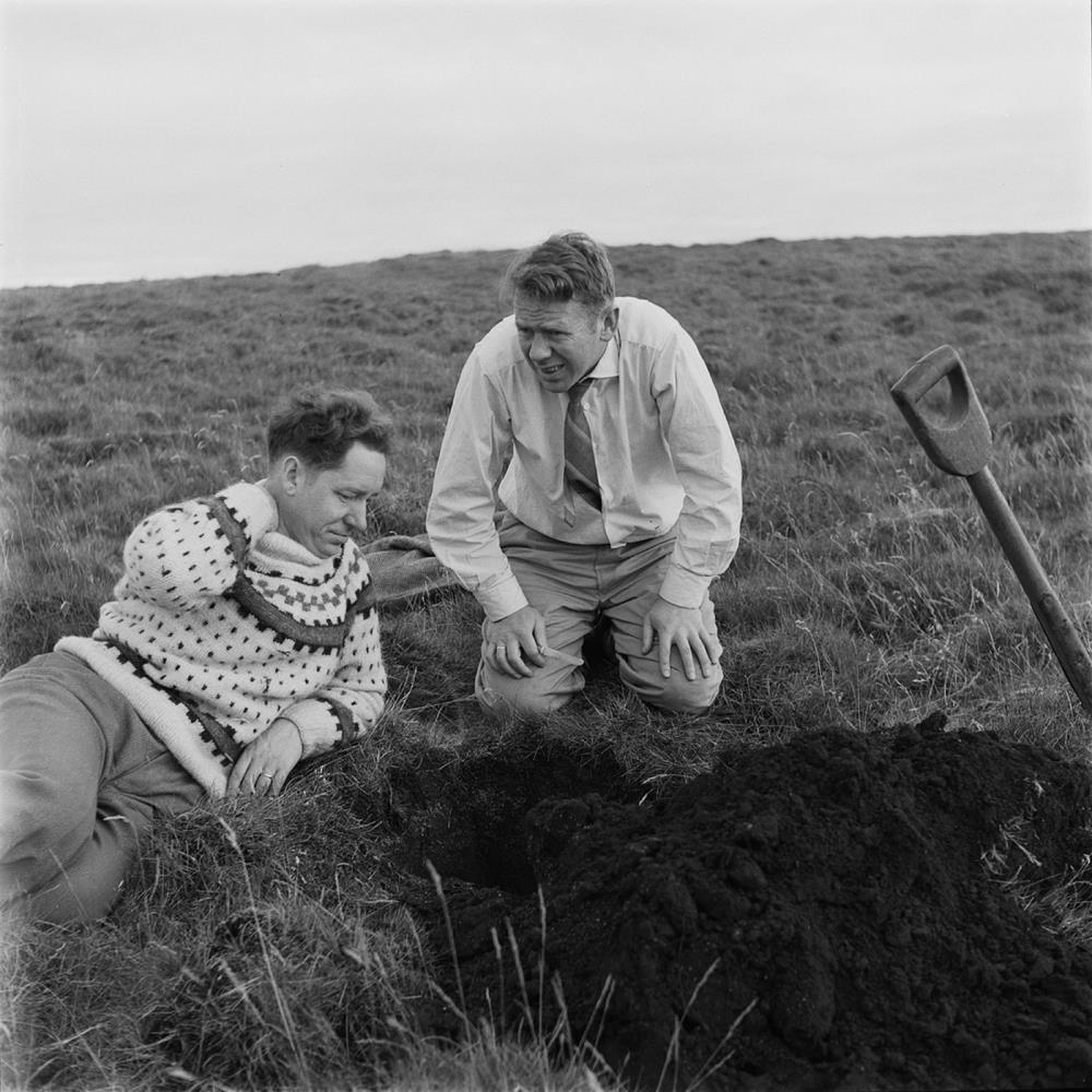 Björn Þorsteinsson og Þorleifur Einarsson við rannsóknir í Garðinum á Reykjanesi.