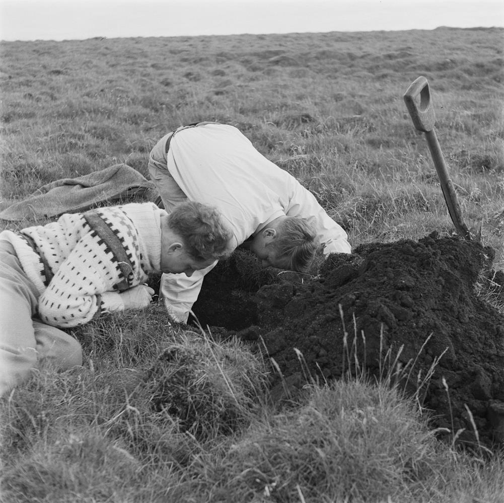 Björn Þorsteinsson og Þorleifur Einarsson við rannsóknir í Garðinum á Reykjanesi.