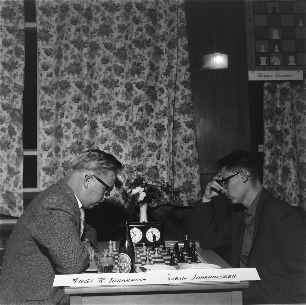 Ingi R. Jóhannsson og Svein Jóhannessen (skákmeistari Norðurlanda) tefla.