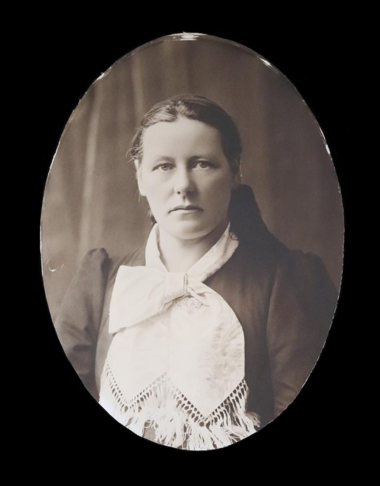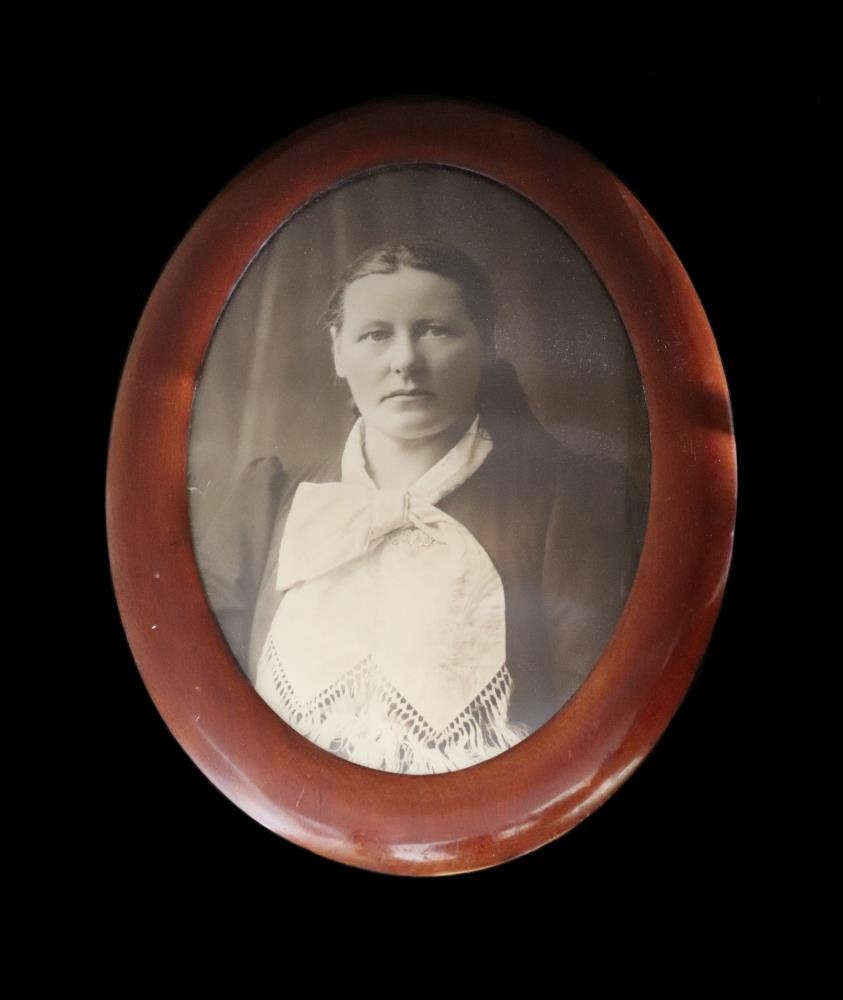 Ljósmynd í ramma af Sigríði Pétursdóttur Sívertsen, fæddri 1860, látin 1916. Húsfreyja á Gilsbakka í Hvítársíðu 1881 til 1916. Eiginkona Sr. Magnúsar Andréssonar. Gefendur: Fjölskylda Þorbjargar Pétursdóttur.