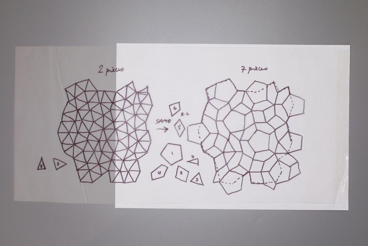 Teikingarnar byggja á þekktum mynstrum frá öðrum stæðfræðingum, þ.e. Penrose flísum frá Roger Penrose og Amman línum frá Robert Amman.