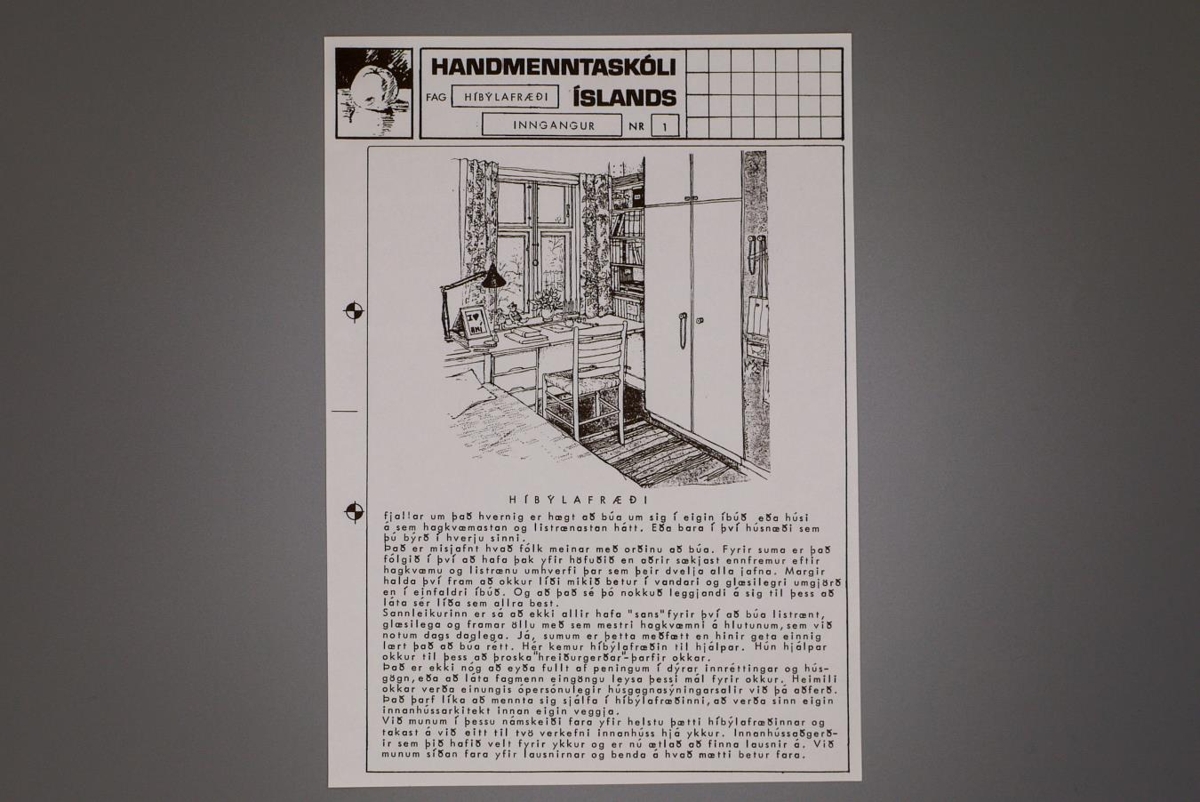 Art title: Handmenntaskóli Íslands, híbýlafræði