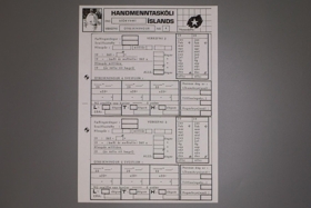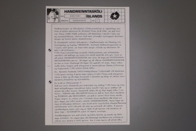 Handmenntaskóli Íslands var bréfaskóli sem starfræktur var 1981-1995. Skólastjórinn var Friðrik G. Friðriksson og við skólann kenndu margir kennarar en til að byrja með helst þeir Haukur Halldórsson og Einar Þorsteinn Ásgeirsson. Nemendur gátu skráð sig í fjölbreytt námskeið og fengu send verkefni í pósti. Þá sendu nemendur unnin verkefni til kennara skólans sem svo gerðu athugasemdir og sendu til baka til nemenda. Til að byrja var boðið upp á fjögur námskeið (teiknun 1. og 2. önn, skrautskrift og bótasaumur) en framboðið jókst með árunum. Í frumritum eru oft handteiknaðar myndir notaðar sem sýnidæmi eða skýringarmyndir.