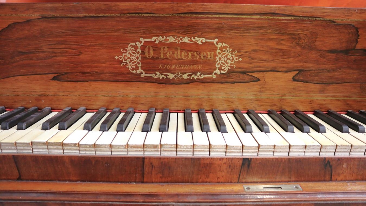 Píanó, "e. square piano", af gerðinni "O.Pedersen Kjöbenhavn". Notkunarstaður og saga ekki þekkt. Píanóið virðist nokkuð gamalt og sést á því slit. Eitthvað er um viðgerðir. Fætur eru frekar mikið útskornir og skreyttir en píanóið sjálft er nokkuð einfalt í útliti. Það vantar fótpedala / fótstig.