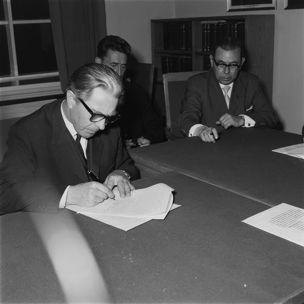 Austurvöllur, Alþingishúsið. Samningar ASÍ og ríkisstjórnarinnar, júní 1964 (AK).