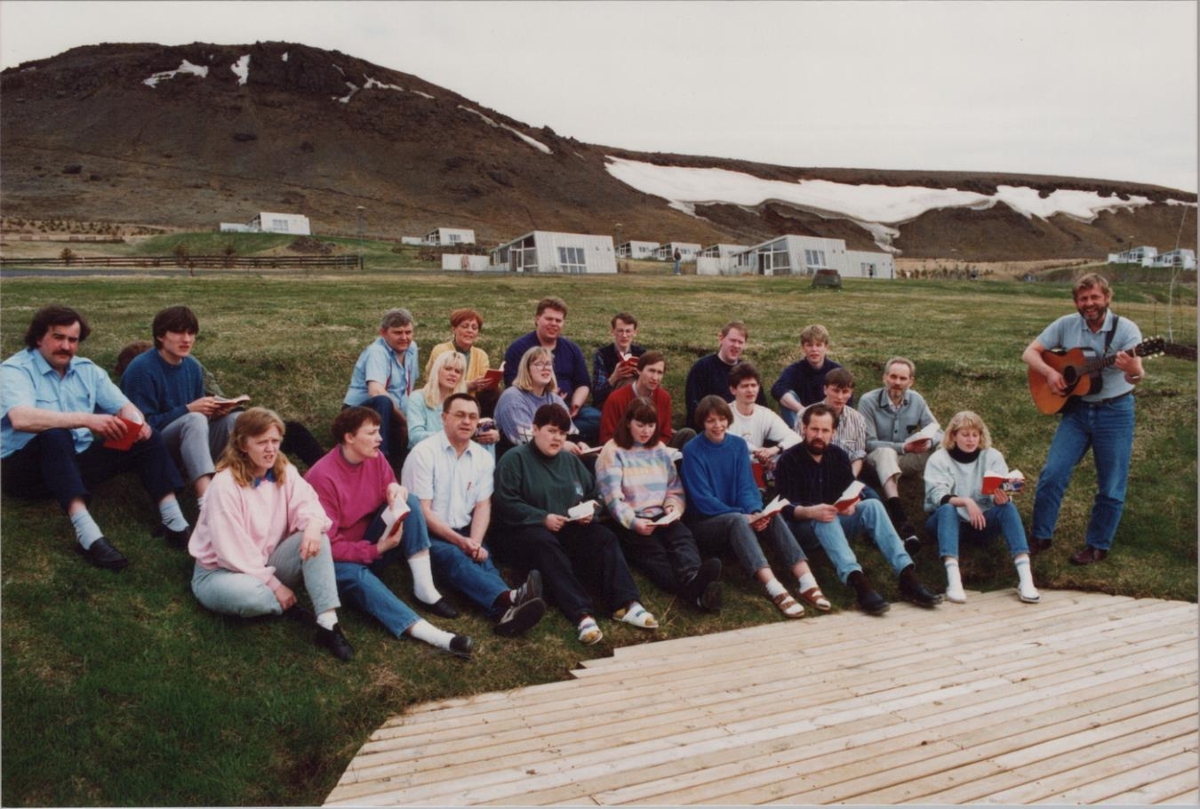 Fremri röð þriðji frá vinstri: Bjarni Ólafsson Árnason (f. 1939), líkleg tengdur stéttarfélagi Sementsverksmiðjunnar.“ (NÞÁ 2025)