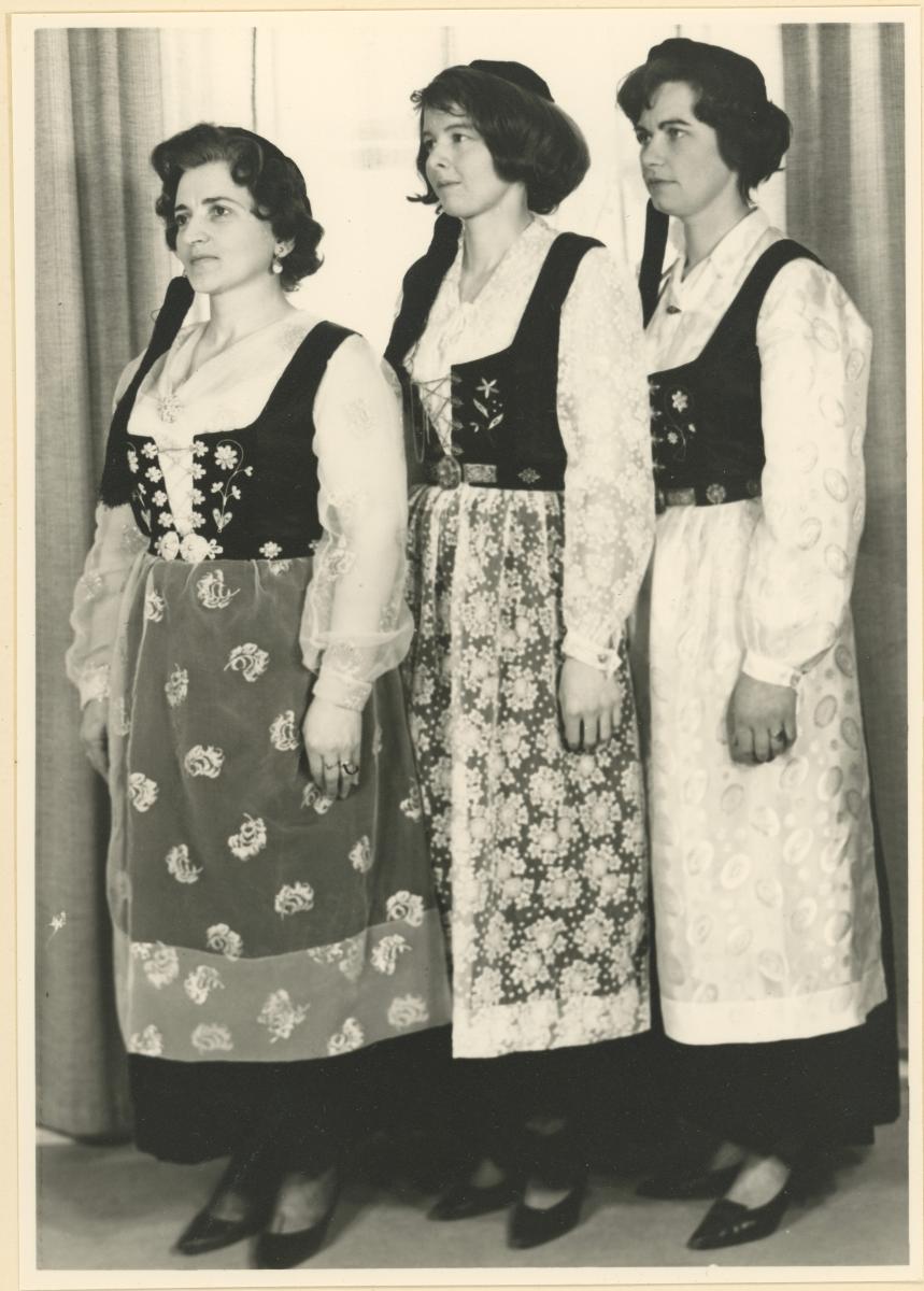 Ingigerður G. Guðjónsdóttir skólastjóri, Bryndís Guðmundsdóttir vefnaðarkennari og Erla Ásgeirsdóttir handavinnukennari við Húsmæðraskólann á Staðarfelli í maí 1964.