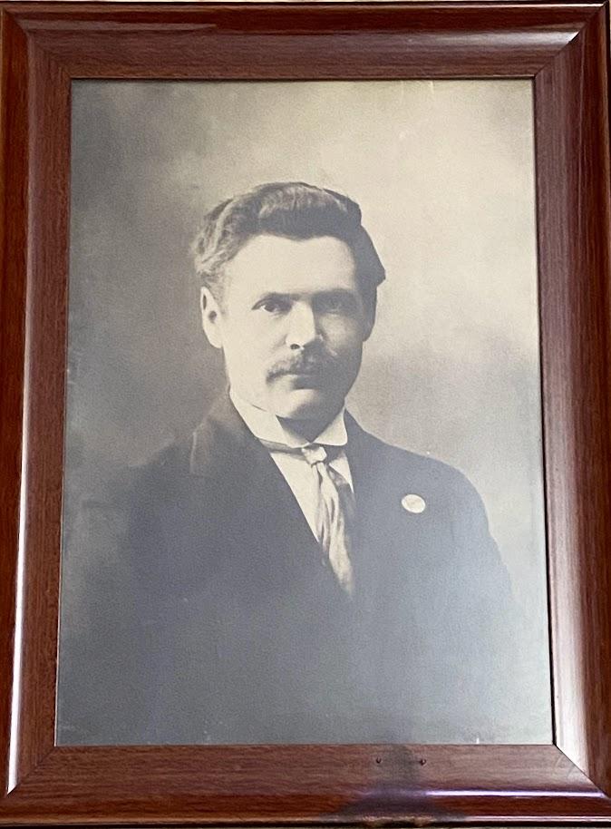 Ljósmynd af Guðmundi Gunnlaugssyni kennara frá Hafurstöðum. Hann var bóndi í Ærlækjarseli. Drukknaði 1920 við veiðar í ósnum.