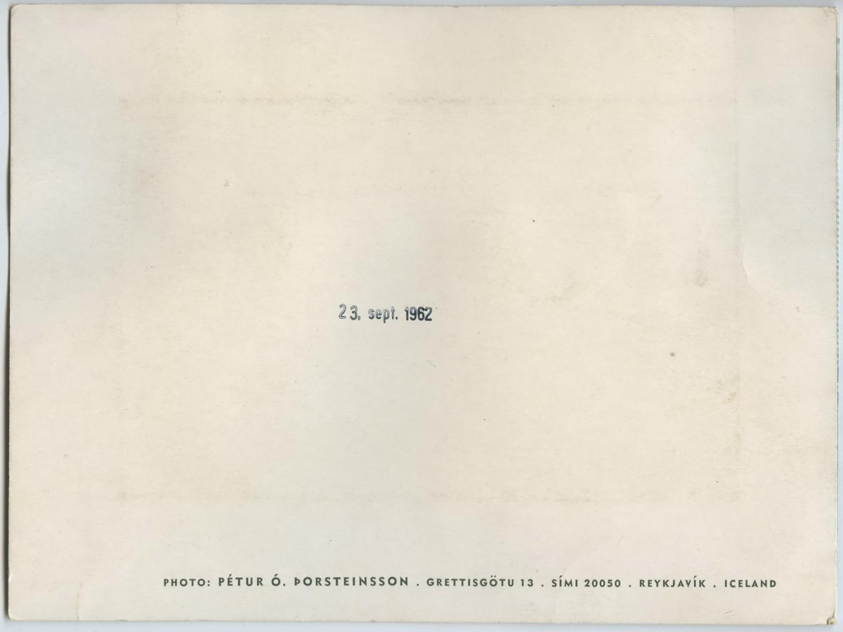 Umslag er merkt: „Klúbburinn“ á framhlið og á bakhlið er dagstimpill 23. sept. 1962 og merking ljósmyndara: Pétur Ó. Þorsteinsson. Grettisgötu 13. Sími 20050. Reykjavík. Iceland.