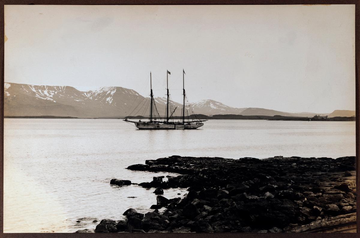 Þrímastra seglskip á Ytri höfninni við Reykjavík.
