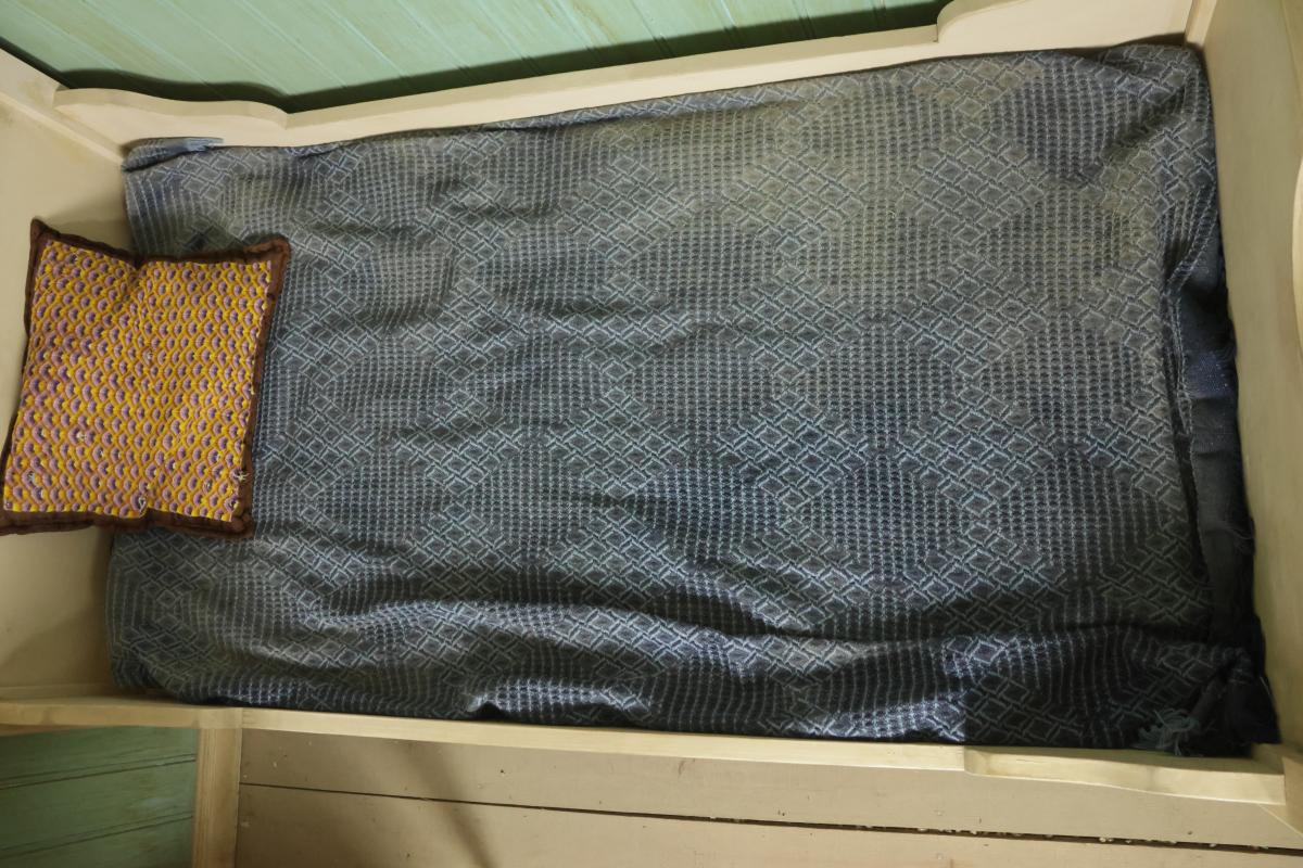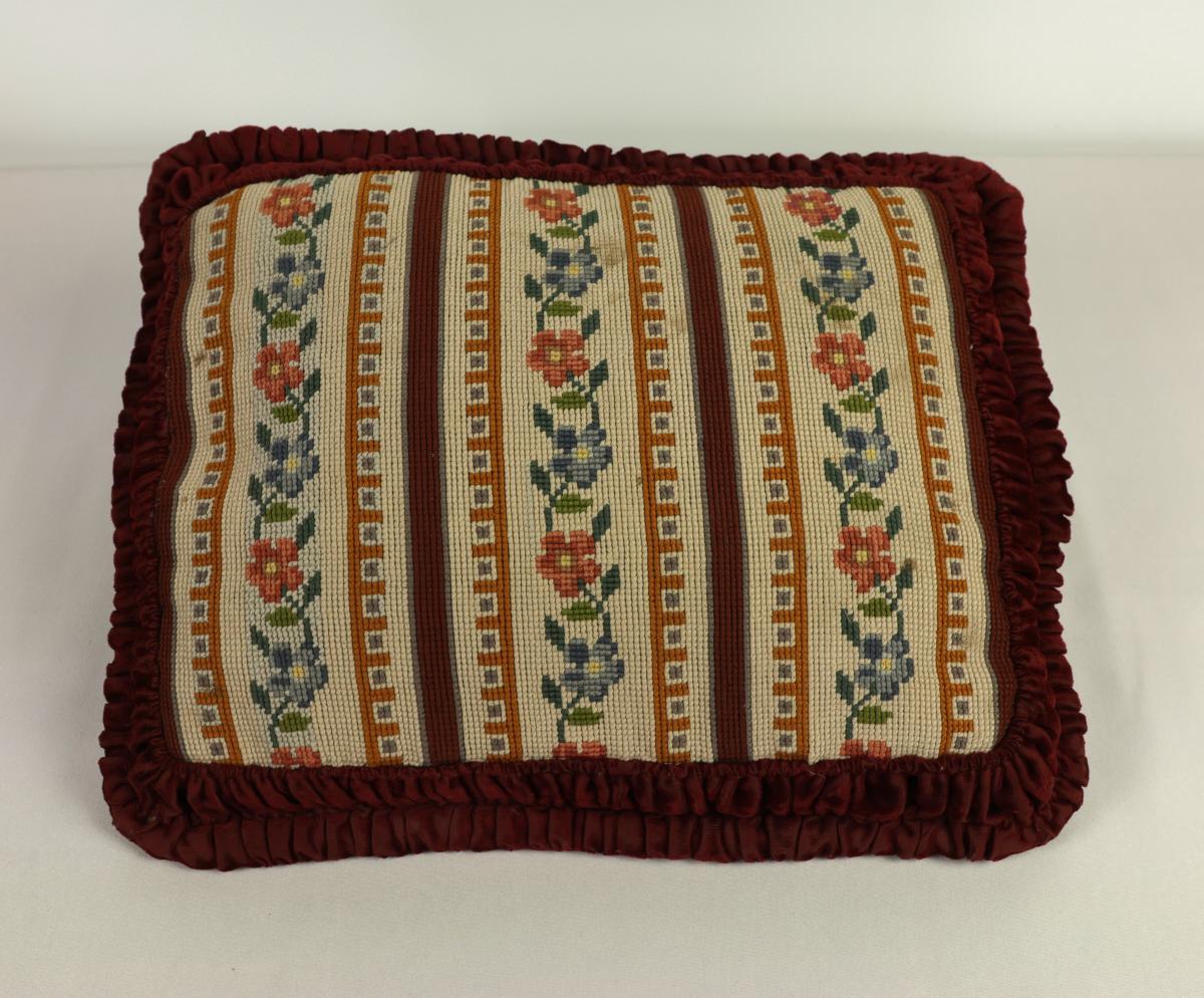 Ingibjörg Zophoníasdóttir gerði teppið og gaf Þórbergssetri 2006. Ofið efni, blámynstrað með kögri.