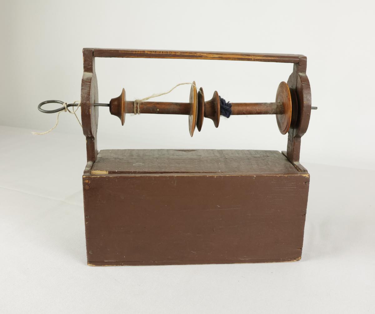 Brúnmálaður snældustokkur sem Pétur Sigurbjörnsson frá Borgarhöfn, vélsmiður á Höfn, smíðaði. Stokkurinn var í eigu Þóreyjar Þorláksdóttur vinnukonu á Hala.