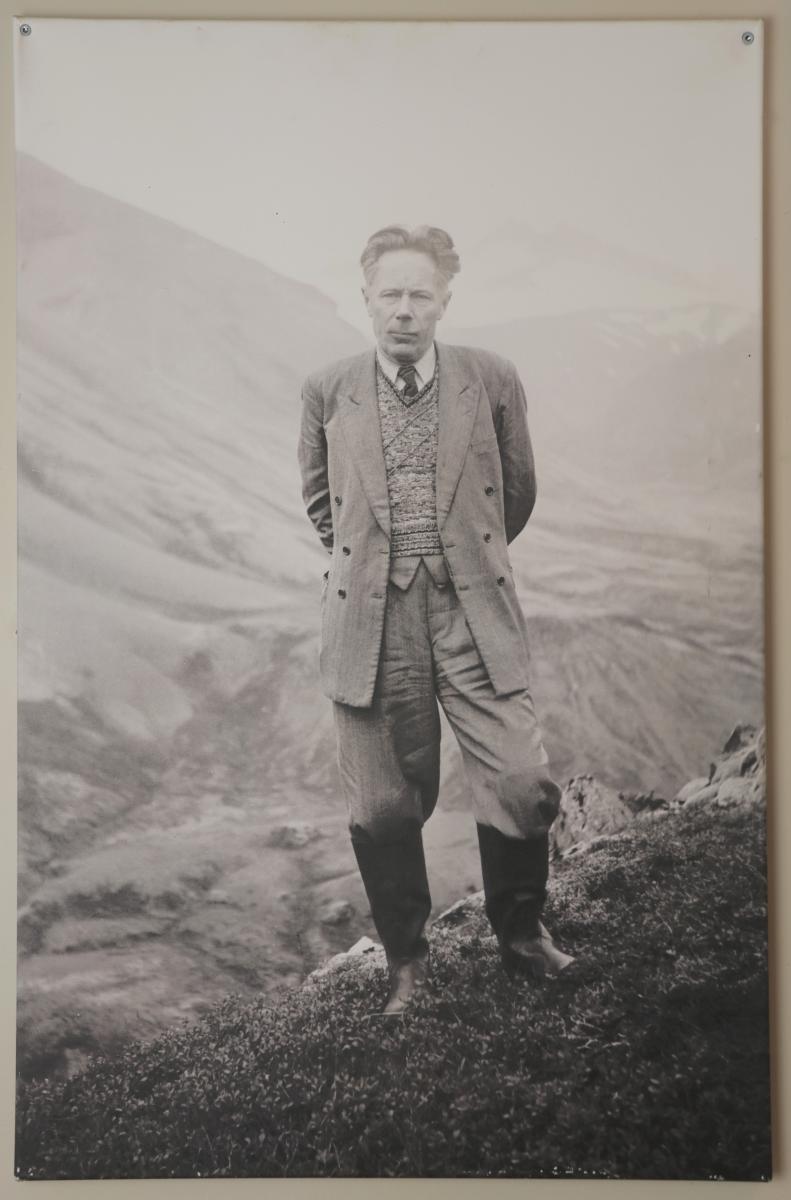 Þórbergur Þórðarson við minni Hvannadals í Suðursveit. Skarphéðinn Gíslason á Vagnsstöðum tók myndina.