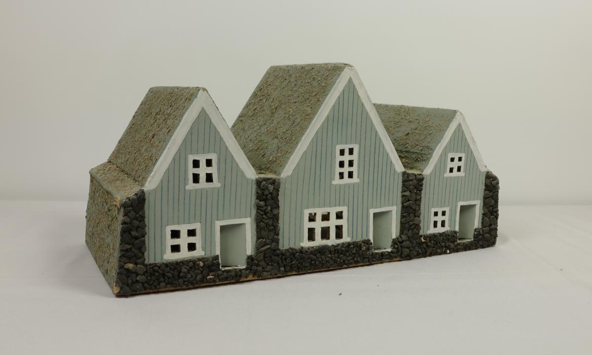 Eftilíking íslensks burstabæjar. Þrjár burstir, gluggar á framhlið. Haganlega smíðaður af Þorsteini Magnússuni (1899-1976) frá Lækjarhúsum í Suðursveit. Þorsteinn lenti í Sæbjargarslysinu 4. maí árið 1920. Þá var róið á opnum skipum til fiskjar frá Bjarnahraunssandi, sem að var aðalútróðrastaður sveitarinnar. Skipið fékk á sig stórsjó í lendingu, svo það steyptist fram yfir sig og flestir lentu í sjónum. Þorsteinn bjargaðist en faðir hans drukknaði við annan mann auk þess sem einn skipverja slasaðist illa. Þorsteinn flutti stuttu síðar til Reykjavíkur, vann þar við smíðar og viðgerðir m.a. á Kleppsspítalanum í Reykjavík.