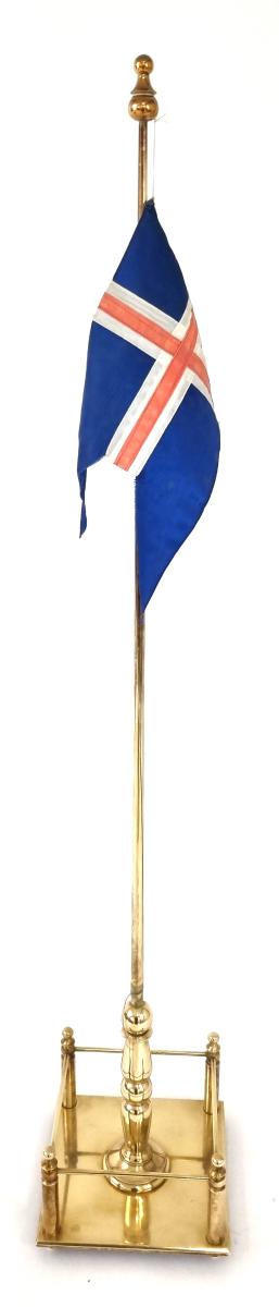 Borðfánastöng með íslenska fánanum. Smíði Einars S. Jóhannessonar.