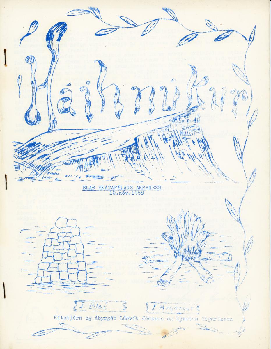 Háihnúkur : blað Skátafélags Akraness. - 1. árg. 1. tbl. - Ritstjórn og árbyrgð: Lúðvík Jónsson og Kjartan Sigurðsson
