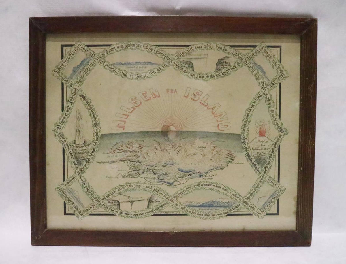 Teikning, innr., "Hilsen fra Island...", eftir Samúel Eggertsson. Frumteikning, gerð árið 1915.