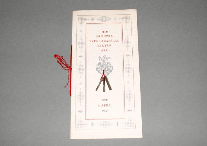 bandi þrír prentstafir: H, Í og P (= Hið íslenzka prentarafélag). Í auk
