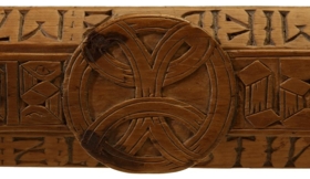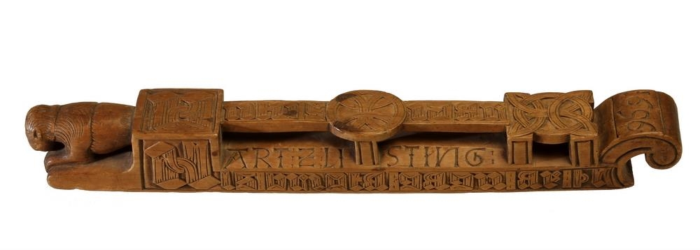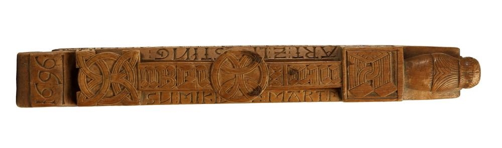 Trafakefli: það er alt útskorið með letri 1696. Letrið, sem á því er, get eg að