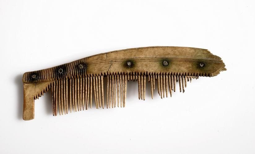 Kambur úr beini, settur saman úr mörgum pörtum eins og algengast var. Fundinn við rannsóknir á Stöng í Þjórsárdal, mun frá 11. öld. 13831 Kambur úr beini, settur saman úr mörgum pörtum eins og algengast var. Fundinn við rannsóknir á Stöng í Þjórsárdal á Suðurlandi, mun frá 11. öld. 13831