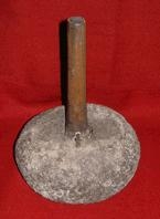 tveimur hliðum. Skaftið stutt og sívalt og járnteinn í gegnum það neðan