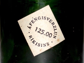 Áfengisverzlun ríkisins. Flaskan hefur kostað 125 krónur.