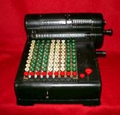 MARCHANT. Takkarnir á lyklaborðinu eru grænir, hvítir og rauðir. Undir