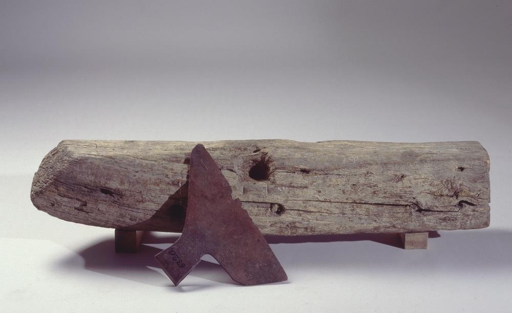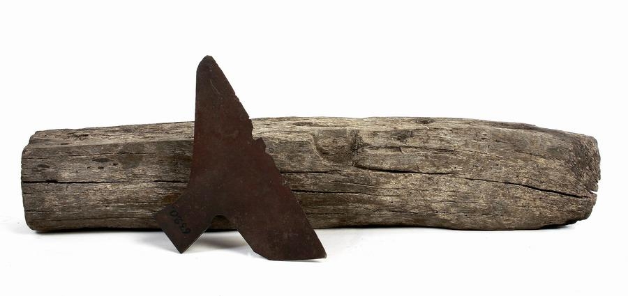 Axarblað úr stáli af böðulsöxi þeirri er þau Friðrik Sigurðsson og Agnes Magnúsdóttir, morðingjar Natans Ketilssonar, voru hálshöggvin með 12. jan. 1830 í Vatnsdalshólum af Guðmundi Ketilssyni. Blaðið er 44 cm. að lengd fyrir egg, virðist hafa verið ½ cm. lengra, og 27 cm. að breidd með auganu. Eggin hefur verið mjög bein, er nú stórskörðótt og blaðið alt gallað, þareð öxin hefur lent í húsbruna á Möðruvöllum í Hörgárdal [1)], þarsem hún var geymd meðan þar var amtmannssetur og síðan unz Stefán skólameistari Stefánsson flutti hana með sér til Akureyrar til þess að koma henni til safnsins. - Höggstokkur sá er notaður var við sama tækifæri og öxi þessi, er áður kominn til safnsins, nr. 5411.