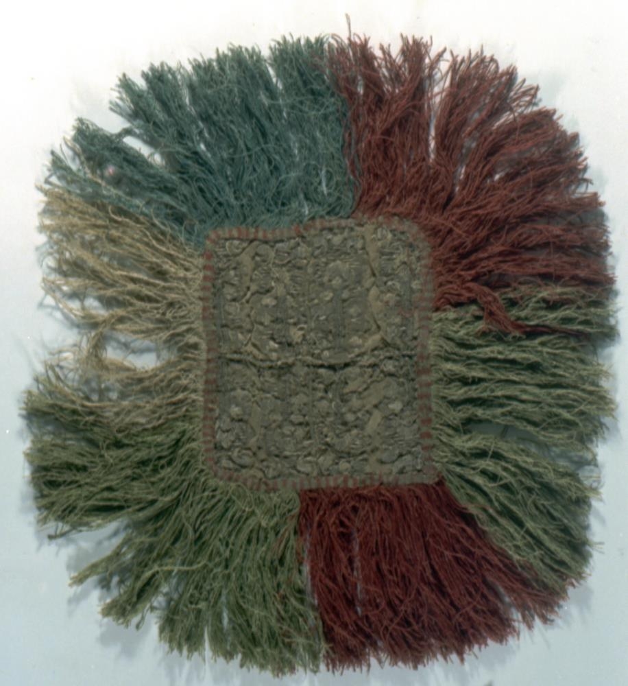 Stokkseyrarkirkja: Patínudúkur, ferhyrndur 16 x 14 cm. að stærð með 10 cm. löngu kögri, rauðu, grænu og grænbláu, umhverfis, yfir eru samansaumaðar pjötlur með útsaumi eða baldýringu með silfurvír, virðast vera á þeim löng hnappagöt og er svo að sjá sem pjötlurnar sjeu af einhverju viðhafnarfati. Undir er dökkblátt, grófgert ljerefts fóður. Líklega frá 18. öld.