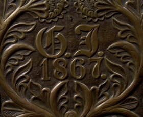 apturbríkinni eru upphafsstafirnir GJ, með gotn. gerð, og ártalið 1867.