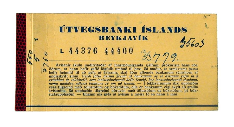 Ávísanahefti / tékkhefti frá Útvegsbanka