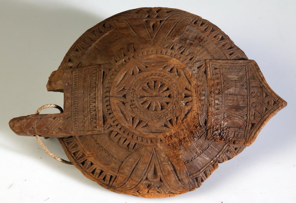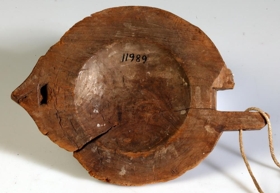Asklok úr furu, snjáð og brotin af því annar kjálkinn, 14,3 cm á breidd. Ofan á því er mikill útskurður, svo ti alveg eins og á lokinu af asknum nr. 11984, og munu þeir vafalaust vera eftir sama mann. Á tungunni fram af lokinu er ártalið 1864. Frá sama. Segir hann lokið frá Helgavatni, en veit að öðru leyti ekki um uppruna þess. Eftir Stefán Jónsson son B. Mallandi á Skaga ( d. 1868).