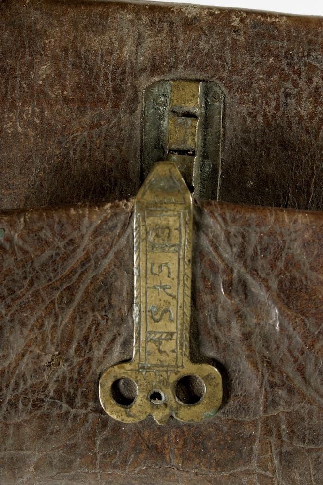Veski, eins konar minnisbók, með spennslum úr látúni. Frá Hvítadal í Saurbæ, frá fyrra hluta 19. aldar.