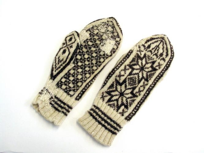 á handarbakinu og skilt munstur ofan á þumlinum en símunstrað er í lófanum.