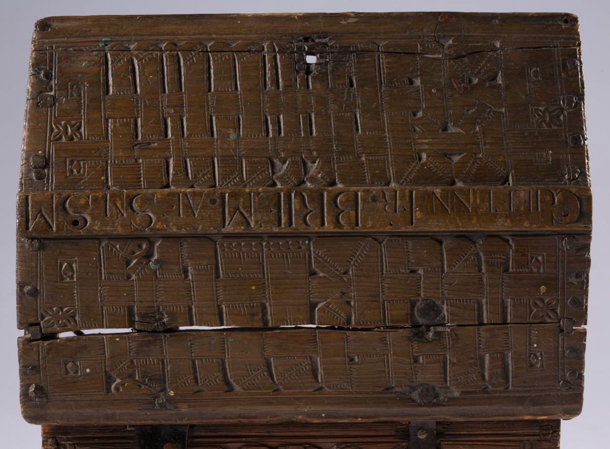 er á bak- og framhlið kistilsins. Þar er letrið öðruvísi en í föðurnafninu