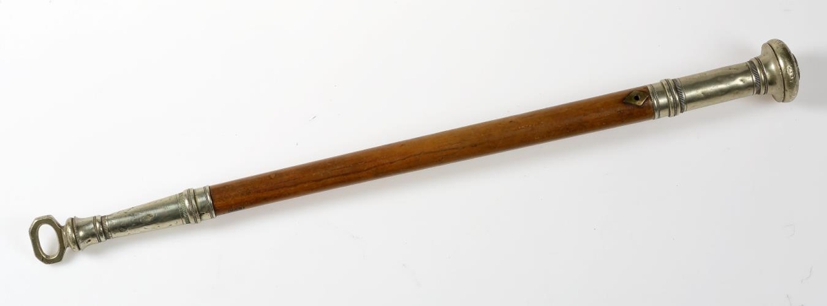 efri hólkurinn er um 11 cm að l., 2,7 að þverm.: hnappurinn 5 cm að þverm.,
