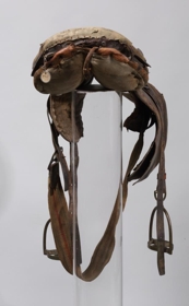 smíðaður: útlent leður, og vaskaskinn á setunni, með útsaumaðri grein í.