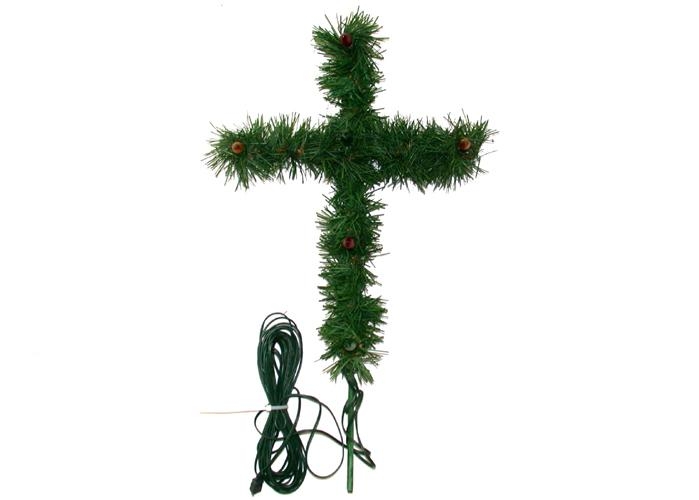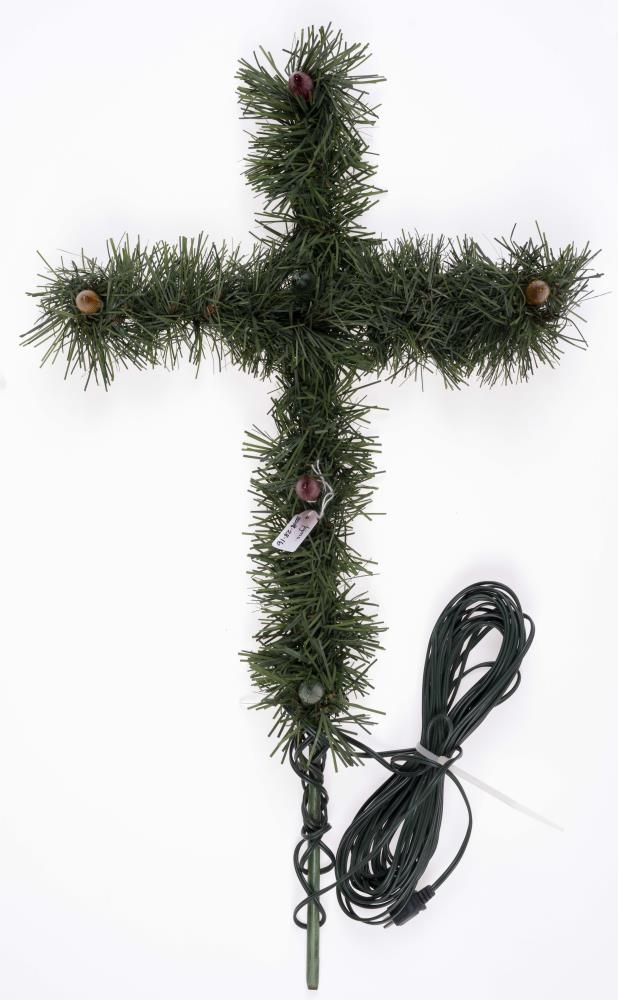 klæddur gerfigreni úr plasti, frá Fossvogskirkjugarði. Sex litaðar perur