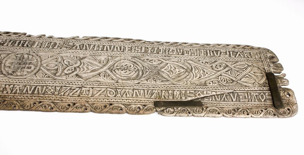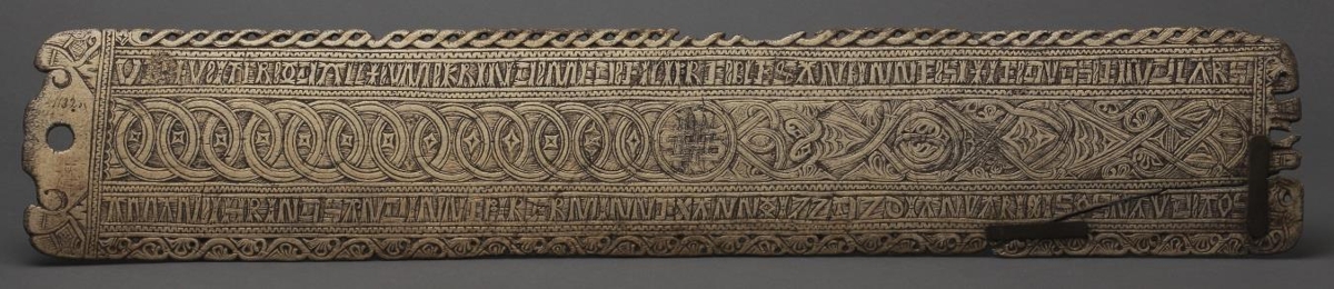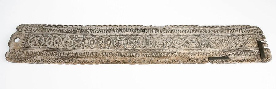 Whalebone bed panel, with a bedtime verse similar to the English prayer: Matthew, Mark , Luke and John, bless the bed that I lie on... Early 18th century.