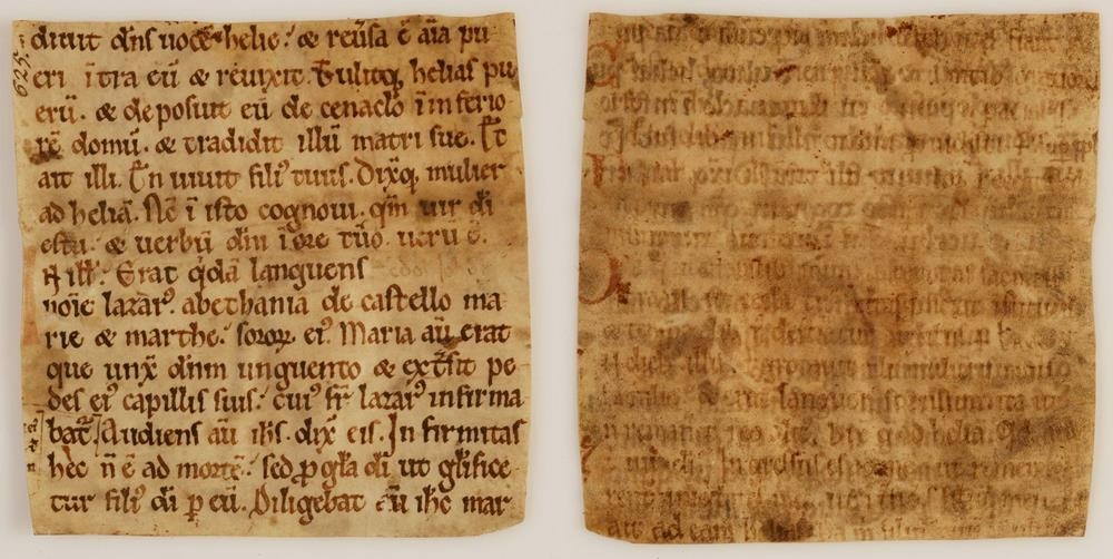 Partur af skinnblaði frá 13. öld, fyrri blaðsíðan er mjög máð, og verður eigi lesið nema sumt á henni: neðarlega á henni er úr Vulgata Reg. 111, 17, 17.: ísl. biblí. fyrri Konúnganna bók, 17, 17, neðst á síðunni er úr 19. versi, þá er skorið af það sem eptir er af 19. versi, svo og 20. og 21. vers. Síðari síðan byrjar á 22. versi og heldur áfram til enda kapítulans, svo byrjar 11. kap. í Jóhannesar guðspjalli, blaðið endar á 5. versi.