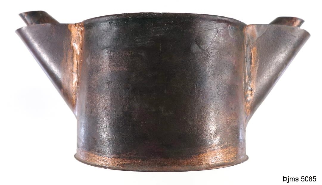 Lampi úr eir, með 2 eyrum eða nefjum, hann er á lengd (um nefin) 15,5 sm ( sjálfur lampinn 8,7 sm), breidd 7,7, hæð 6,6 sm. Lampi þessi er líking af lampa þeim, er Þorleifur prestur Jónsson á Skinnastað gaf safninu árið 1901 og fundinn var 2 álm. í jörðu á Ingveldarstöðum í kelduhverfi. ( sbr. Nr. 4854 í safninu). Ólafur gullsmiður Sveinsson herfur smíðað hann.