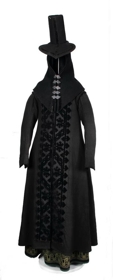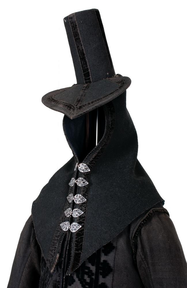 Reiðhöttur úr svörtu klæði, lagður flauels- borðum, frá 18. öld.
