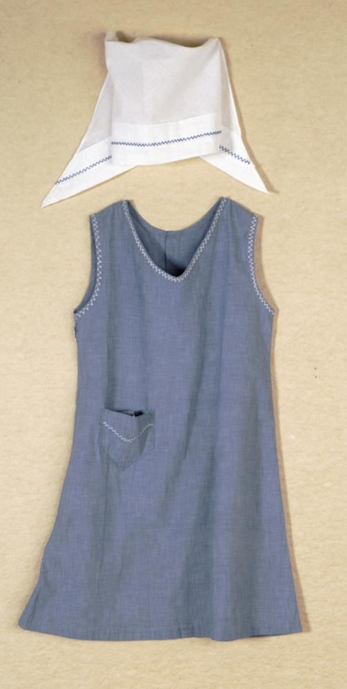 Svuntuna og kappann segist Gerður hafa saumað 10 ára gömul og velta má fyrir sér hver tilgangur og notagildið var. Sé svuntan skoðuð, er hún allsérkennilegt samband af handsaumi og vélsaumi enda unnin á þeim árum er kennsla á saumavélar í barnaskólum var á byrjunarstigi. Kappinn er allur saumaður í höndumog segist Gerður ekki hafa notað hann fyrr en hún fór í húsmæðraskóla og er hún ekki ein um það. Sem skyldustykki fyrir fullnaðarpróf saumar Gerður prufu með hagnýtum vélsaumsaðferðum eins og skyrtusaumni, ermaklaufum, líningum, hnappagati, földum og merkingum.