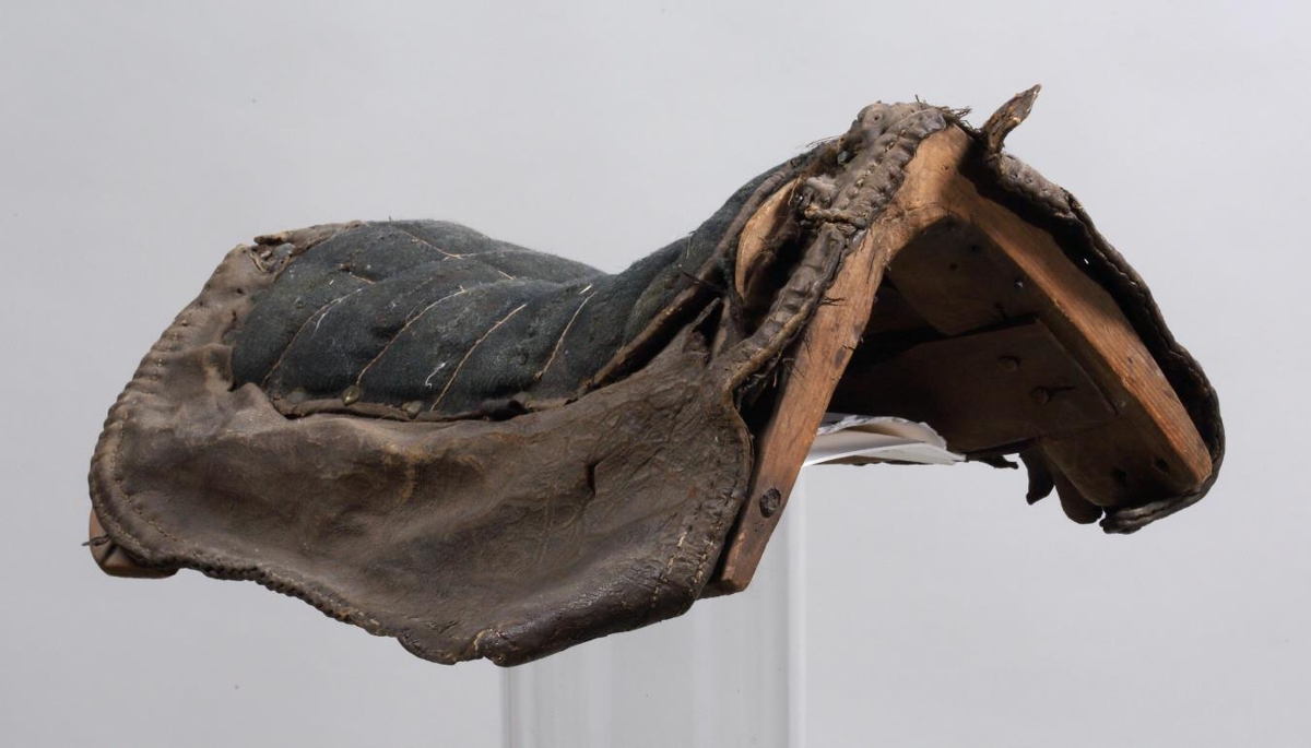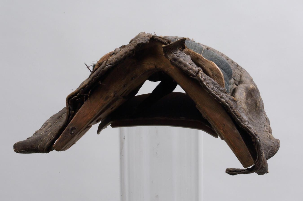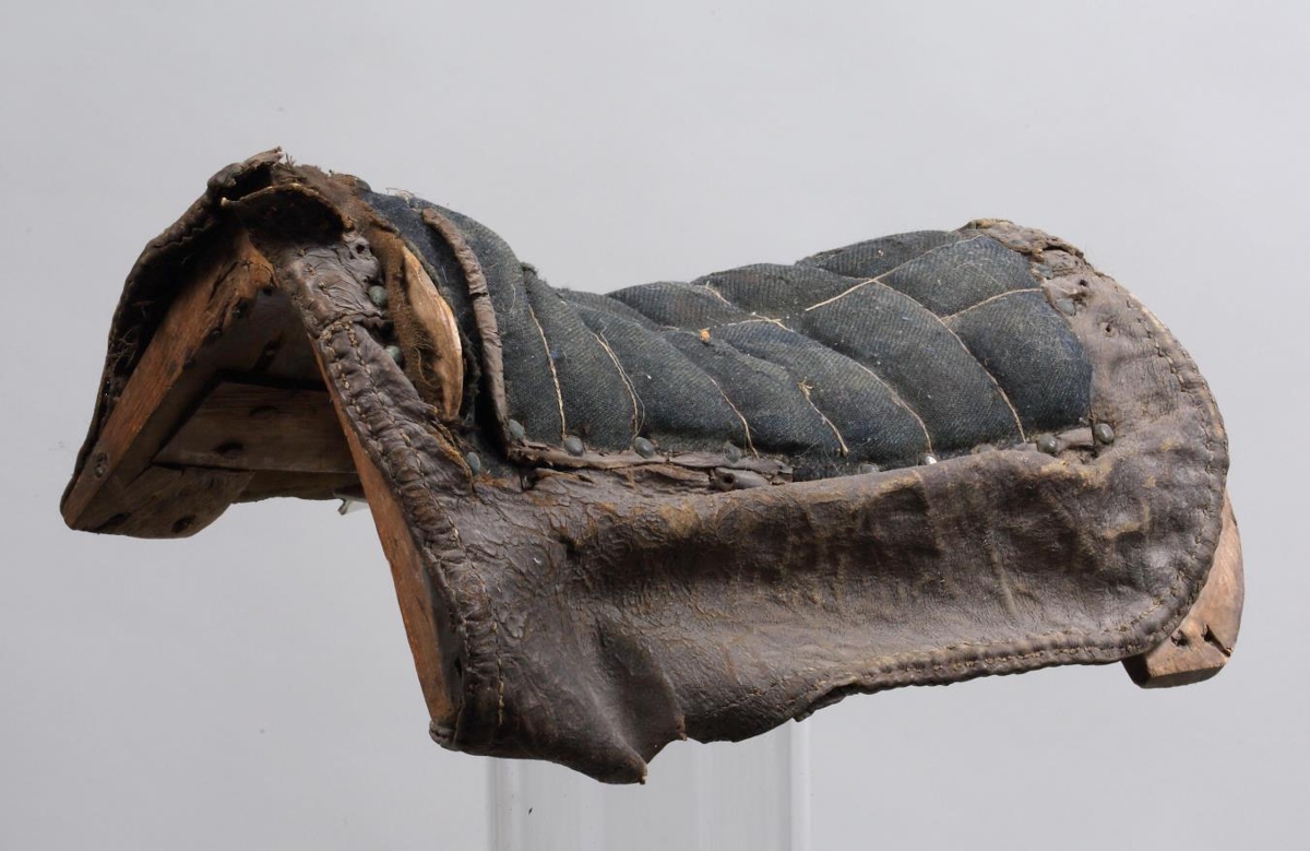 blásvörtu vaðmáli, og sömuleiðis er dýna yfir hnakknum með sama efni, bárótt