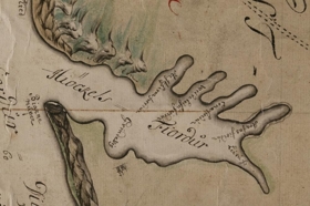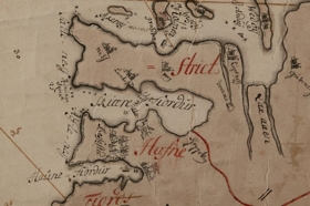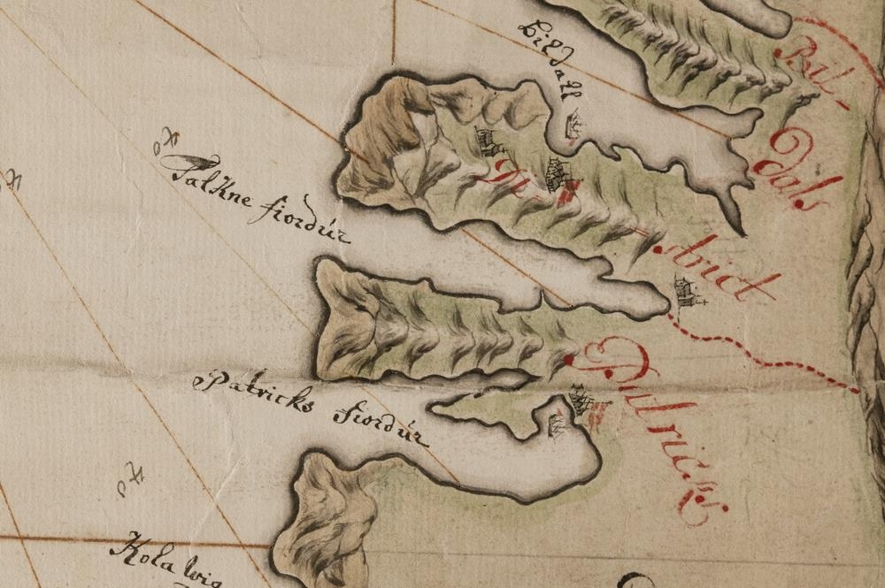 The plan to the left from 1723 was made before actual geodetic surveying began. The author is Hans Hoffgaard, a Danish captain who was in Iceland on account of the Trade Monopoly. Hoffgaard began his surveys in Iceland in 1708 and the oldest surviving map made by him is of Hólmskaupstaður, Reykjavik in 1715. The plan shows, among other things, trading centres and trading districts which did not always follow the county boundaries.