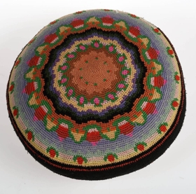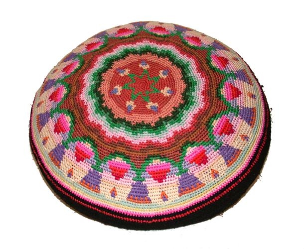Hringlaga púði í skærum litum. Púðinn er heklaður úr uppröktum nælonsokkum. Hann er unninn af Undínu skáldkonu (Helgu Baldvinsdóttur) sem bjó í Vesturheimi. Á eldri árum hætti hún svo að segja skáldskap en sneri sér að gerð þessara púða og varð nokkuð þekkt fyrir. Gefandi púðans er Sigríður Kristín Snæbjarnardóttir Lister (1933) en púðinn er kominn frá föður hennar, Snæbirni Jónssyni, löggiltum dómtúlki og bóksala (f. 1887, d. 1978) sem fékk hann að gjöf frá Undínu en gefandi veit ekki hvenær það var. Snæbjörn bjó lengst af í Reykjavík.