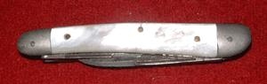 með tveimur misstórum hnífum, skreyttur hvítri skelplötu á báðum hliðum.